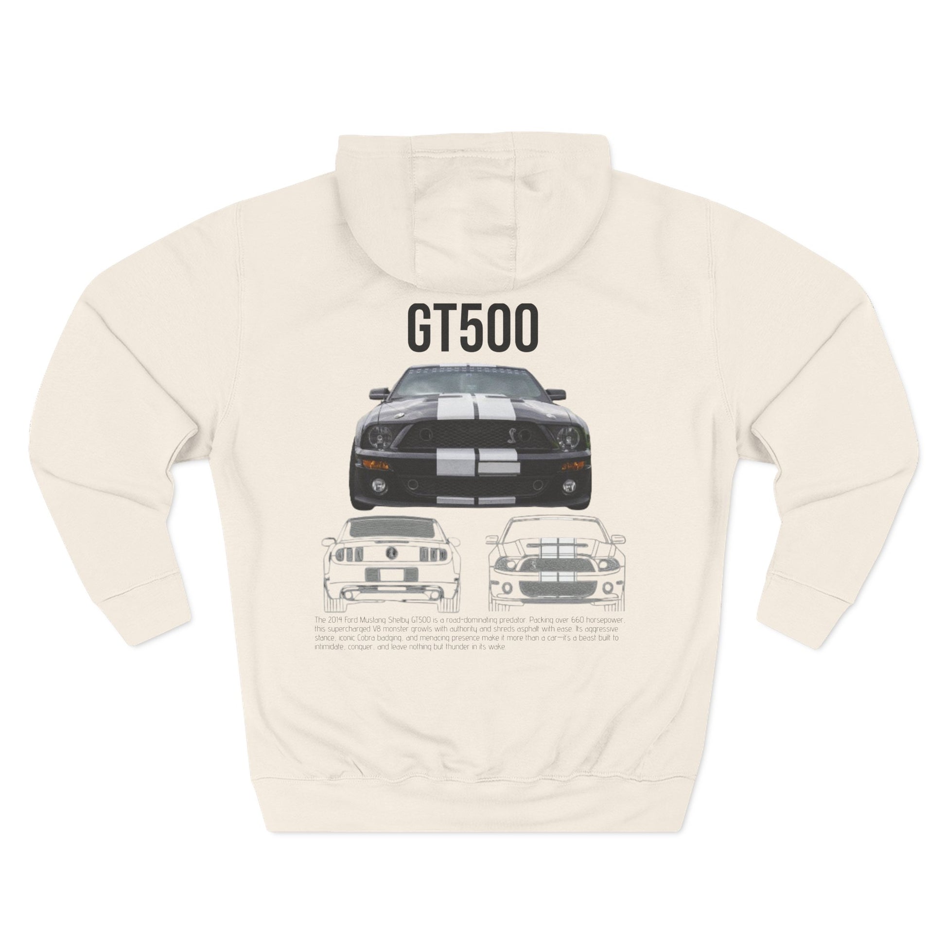GT500 Three-Panel Fleece Hoodie - Cozy Car Enthusiast Sweatshirt, Gift for Muscle Car Lovers, Automotive Apparel, Race Day Outfit