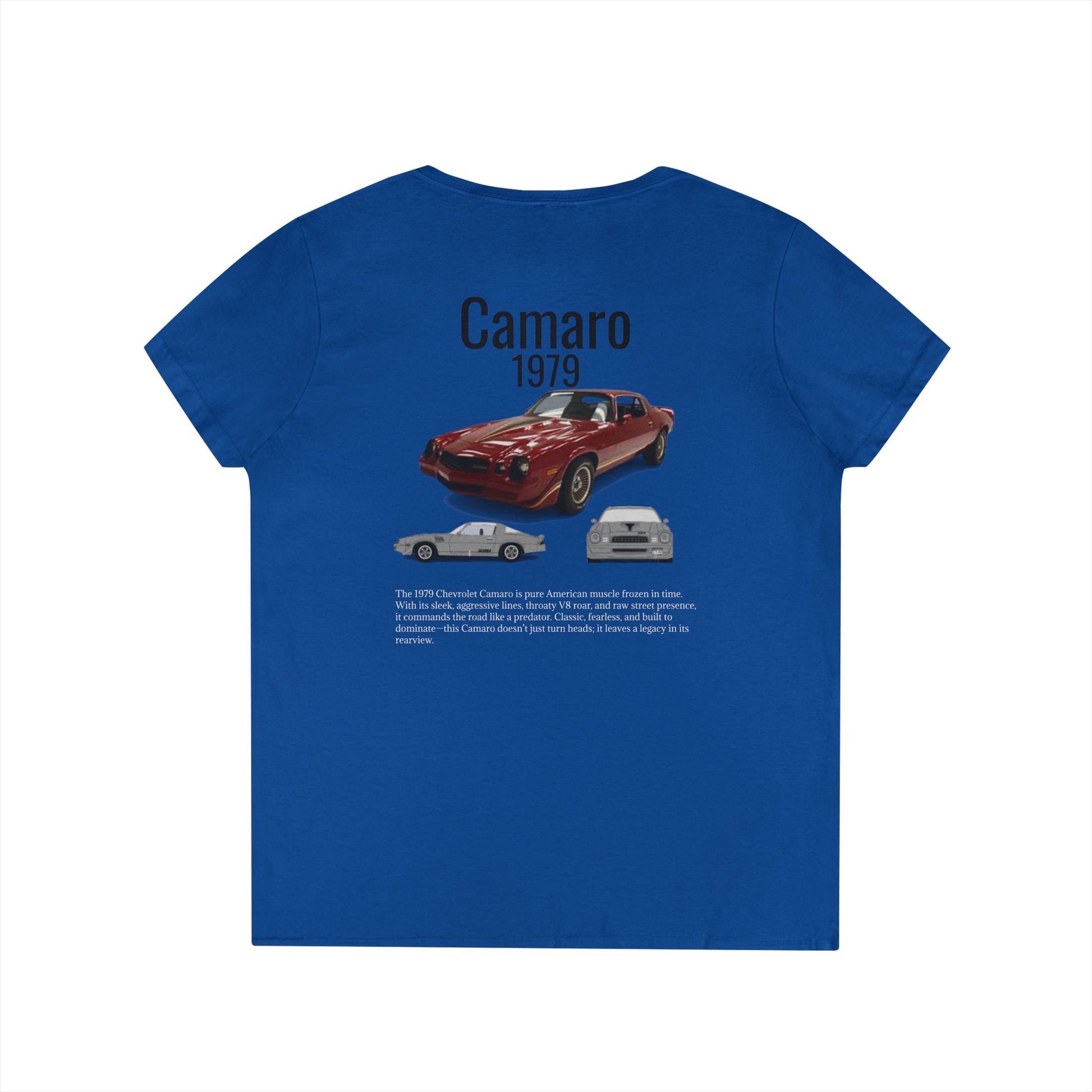 Vintage Camaro V-Neck Tee, Classic Car Lover Gift, Women's T-Shirt, American Flag Design, Retro Style Top